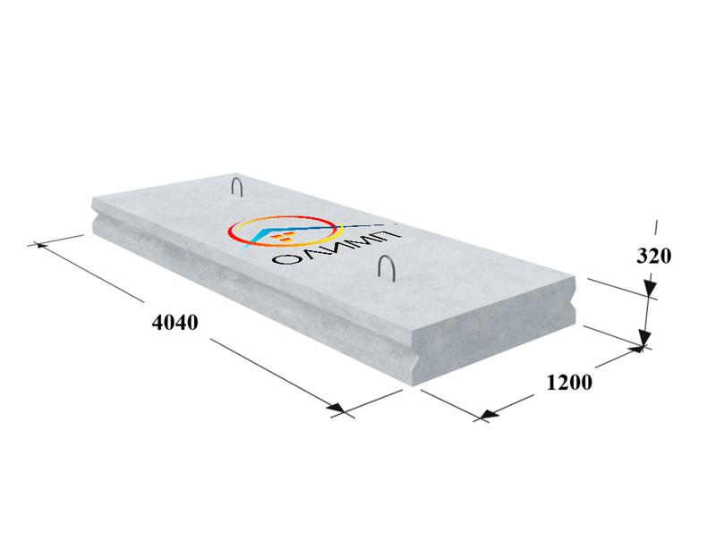 Длина плиты 404 см, ширина 120 см, толщина 32 см.